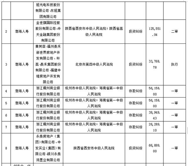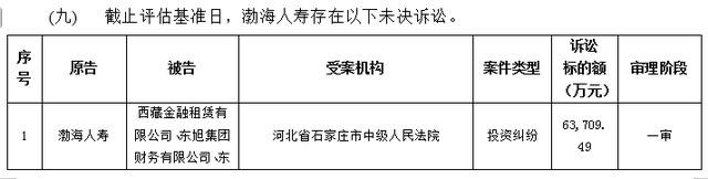此外,渤海人寿正深陷一系列巨额未决诉讼泥潭,多起案件涉案金额惊人,暴露公司投资管理的严峻风险。
