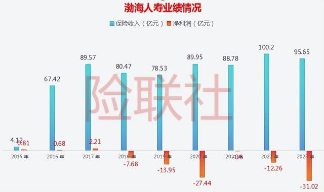 然而,这样的良好势头并未持续。从2018年起,渤海人寿的保费规模陷入滞涨,净利润则加速下滑。2018至2021年,其保险业务收入在78.53亿元至89.95亿元区间波动,直至2022年才勉强突破百亿大关,达到100.20亿元。